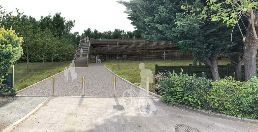 我们的建议是关闭the Hatches的平交道口,并在Spencer close向南200米处建造一座可通行的人行天桥,并将一条照明通道连接到原来的道路。Spencer Close的位置是基于它提供了最短的返回路径的距离,以及可用的土地来建造桥梁。现有的十字路口将被完全拆除并用栅栏隔开。它将与铁路边界的其余部分融为一体,在哈奇斯形成一个死胡同。一个接入点将仅供铁路网员工使用。亚搏彩票软件官网拟建的从斯宾塞近处到原路口的道路将被点亮。