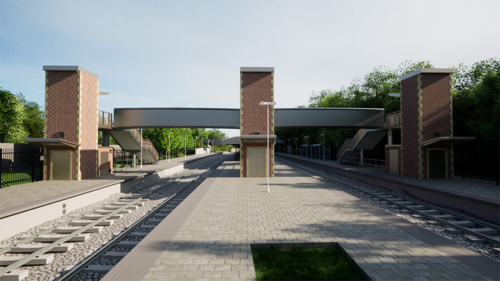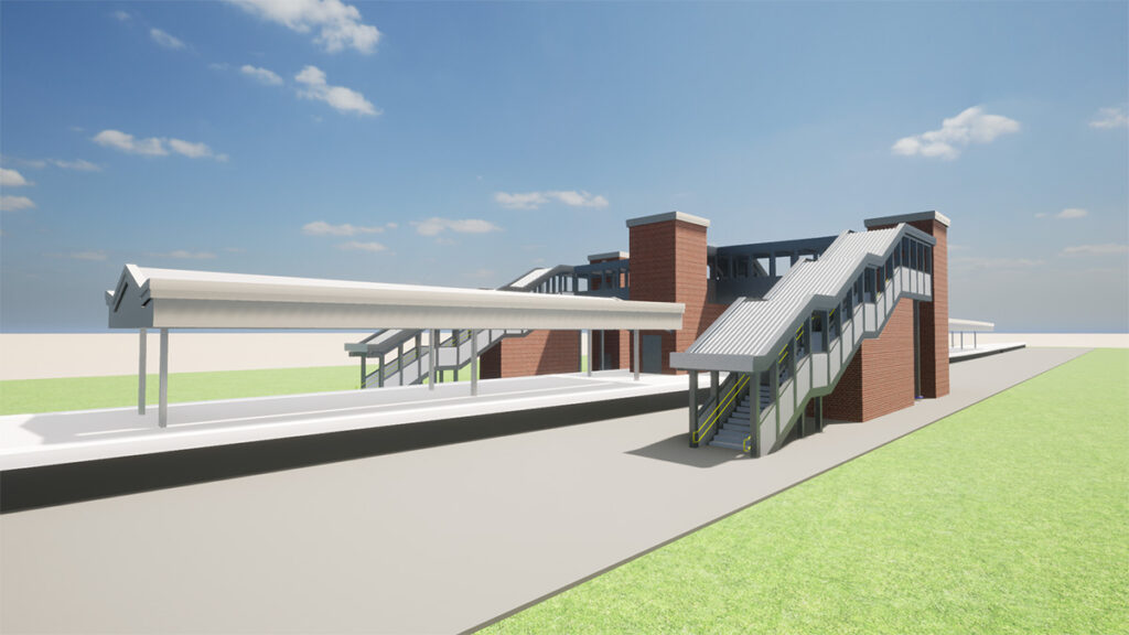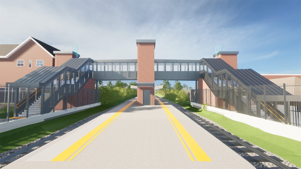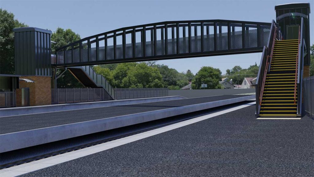 一个新的、覆盖人行桥将建在车站,提供完整的访问通过电梯或楼梯两边车站。新照明和安全摄像头将被安装在电梯和桥。