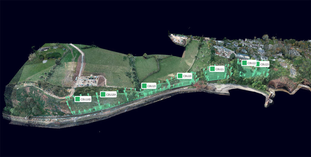 下面的图展示了部分的悬崖,植被在必要时将被删除。图片,有地区(高亮显示为绿色),显示个人悬崖行为单位(cbu)。这些都是帮助我们识别编号类型和弹性解决方案所需的悬崖。