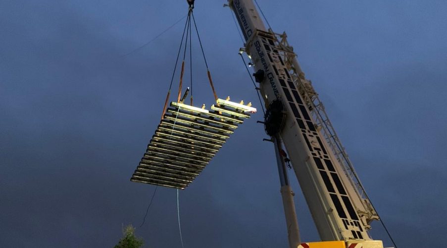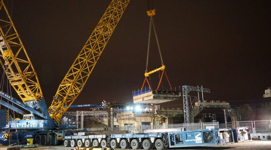 我们使用英国最大的起重机来吊起现有结构的巨大混凝土块: